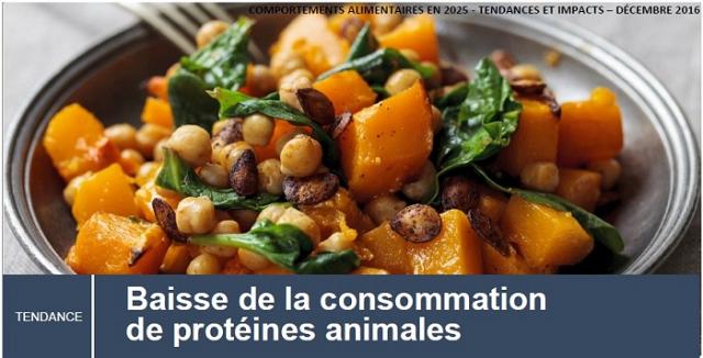 La consommation de protéines animales diminue en France comme dans les autres pays « développés ». Pour des raisons parfois très variées (messages nutritionnels à partir du début des années 1980, coût élevé, scandales alimentaires, idéologie, évolution du rapport HommeAnimal, considérations environnementales…), les consommateurs sont sensibilisés à la recherche de sources de protéines alternatives.