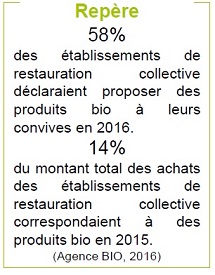 • Proposition de menus incluant davantage, voir exclusivement, de produits issus de l’agriculture biologique, notamment dans les cantines scolaires. Cette initiative est déjà en cours dans certaines villes de France comme Saint-Etienne : aujourd’hui, 80% des aliments composant les repas sont issus de l’agriculture biologique. A noter que la généralisation de cette démarche en France nécessiterait une augmentation de la production de matières premières issues de l’agriculture biologique en France afin d’éviter l’importation de celles-ci. • Evolution de la réglementation et des cahiers des charges pour développer ces nouvelles offres.