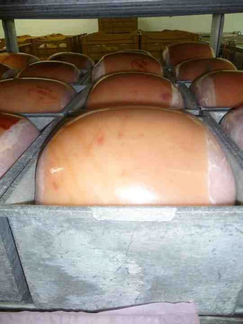 Les pièces de viandes saumurées son introduites dans des malaxeurs ou barattes (gros tonneau pouvant contenir 400 à 500 jambons baignant dans de la saumure , tournant sous vide d’air.)