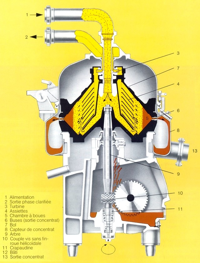Le produit concerné est toujours une suspension comme dans le premier cas de la centrifugeuse clarificatrice, mais ici la phase noble est le sédiment appelé encore concentrât.