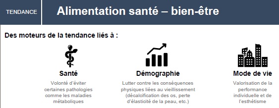 A la suite notamment des crises sanitaires (ESB) et de la diffusion de messages de santé publique, les consommateurs français ont pris conscience du lien qui existe entre leur alimentation, leur santé et leur bien-être. Une partie des consommateurs cherche ainsi à travers l’alimentation à réduire le risque de maladies et/ou à améliorer ses performances (physiques, intellectuelles).