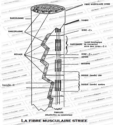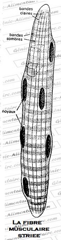La fibre musculaire striée est une cellule plurinuclée d’un diamètre de 50 à 60µ et d’une longueur de quelques mm à quelques cm ( jusqu’à 20 cm) .