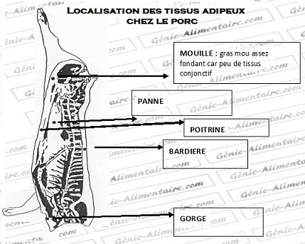 Le tissu adipeux de porc est de très loin le plus utilisé en charcuterie, aussi étudierons nous uniquement celui-ci.