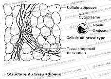 Le tissu adipeux est un type de tissu conjonctif particulier où les cellules très nombreuses sont chargées en lipides. Les fibres conjonctives restent présentes comme tissu de soutien .