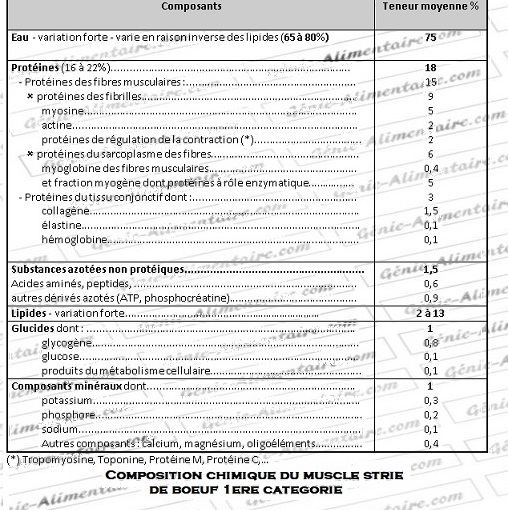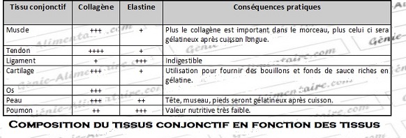 La teneur en collagène des muscles est très variable (rapport C/P de moins de 5 jusqu’à 25-30)