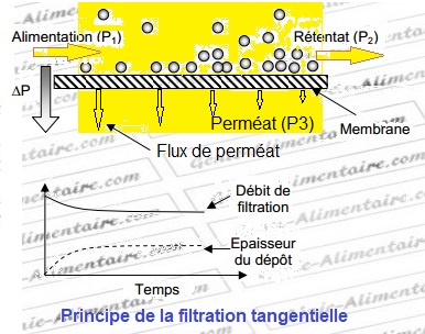 Définition : la filtration tangentielle est un procédé physique de séparation de particules solides dispersées dans une phase liquide. La séparation ce fait en forçant le produit liquide à traverser un milieu poreux chargé d’arrêter les particules en fonction de leur taille.