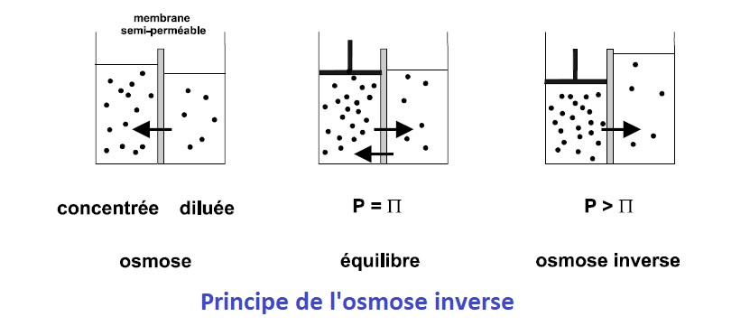• Enfin, la dernière de ces filtrations est l’osmose inverse (OI).