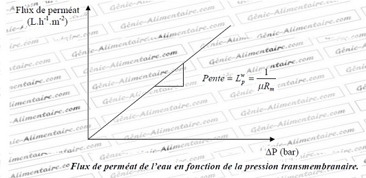 avec Lp = perméabilité hydraulique de la membrane (m s-1Pa-1ou L h-1m-2bar-1)