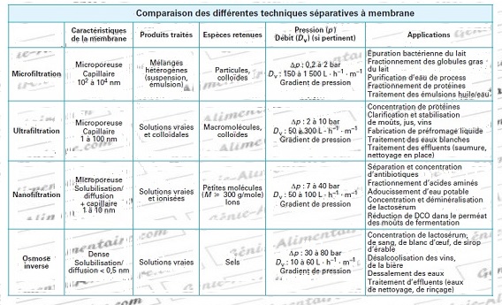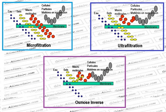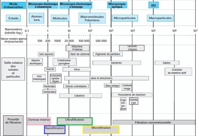 coupure : la microfiltration, l’ultrafiltration, et l’osmose inverse, auxquelles il faut ajouter la nanofiltration, domaine à cheval sur