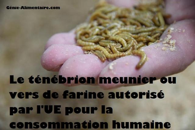 Selon Agronutris, la règlementation européenne autorise la commercialisation des vers de farine « entiers en snacking, par exemple grillés et aromatisés pour l’apéritif », ainsi que broyés en poudre, « dans la limite de 10 %, dans des barres de céréales pour sportifs, des biscuits, des pâtes alimentaires ou des plats préparés ».