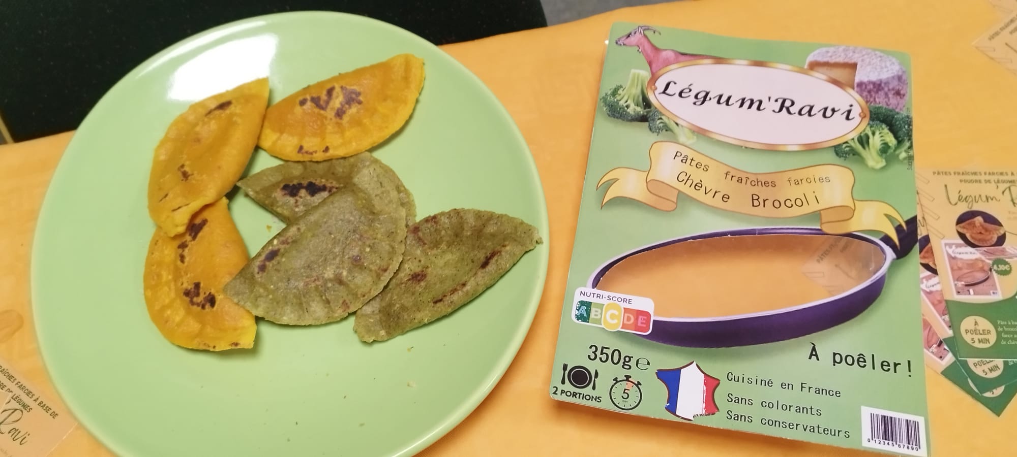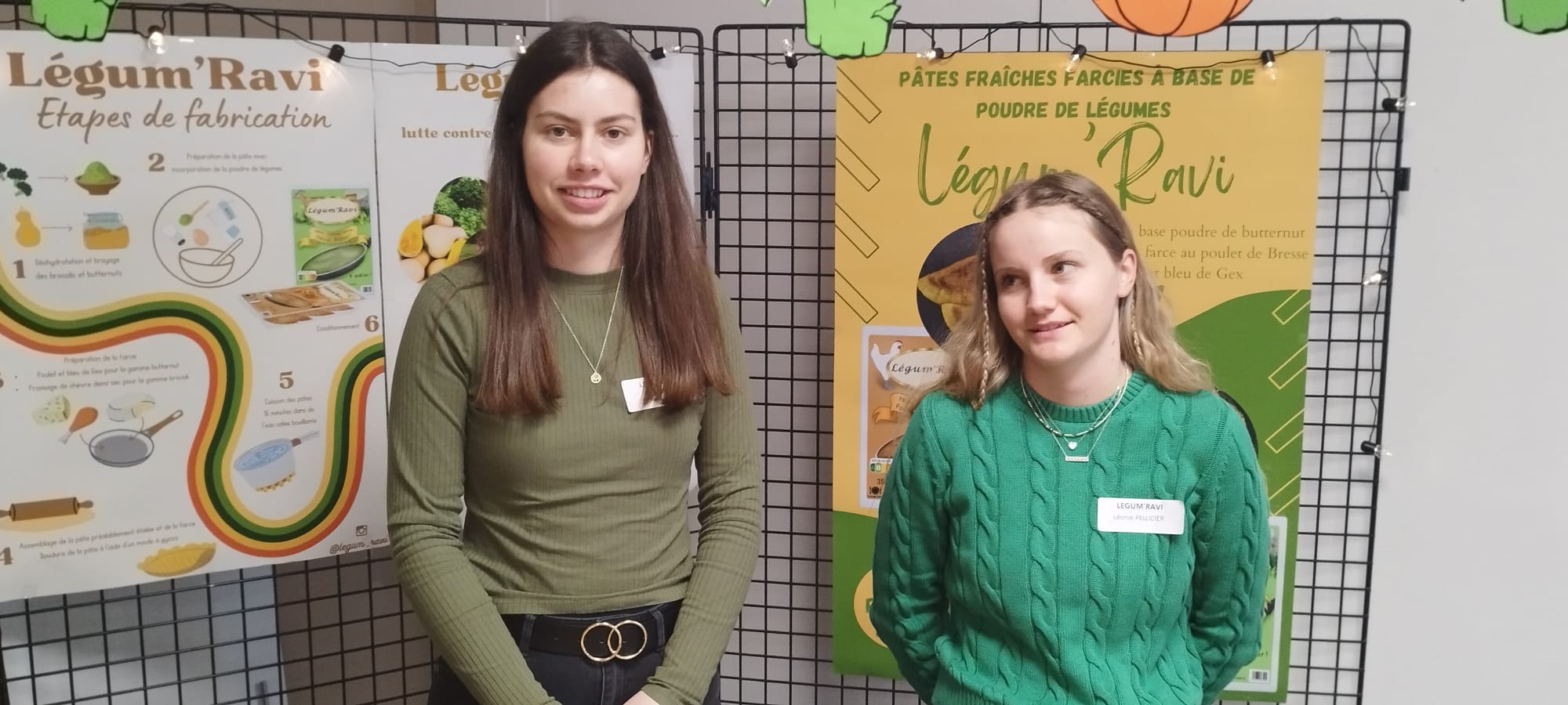 Léonie, Ariane, Mylène, Emeline et Axelle sont des étudiantes du BUT3 de l’IUT Lyon1.Elles nous ont façonné des pâtes fraiches farcies au fromage et au poulet, c’est à dire des produits de notre terroir bressan.L’innovation tient au fait que la pâte contient des légumes ! Leur grande taille et leur préparation à la poêle sont deux autres avantages !