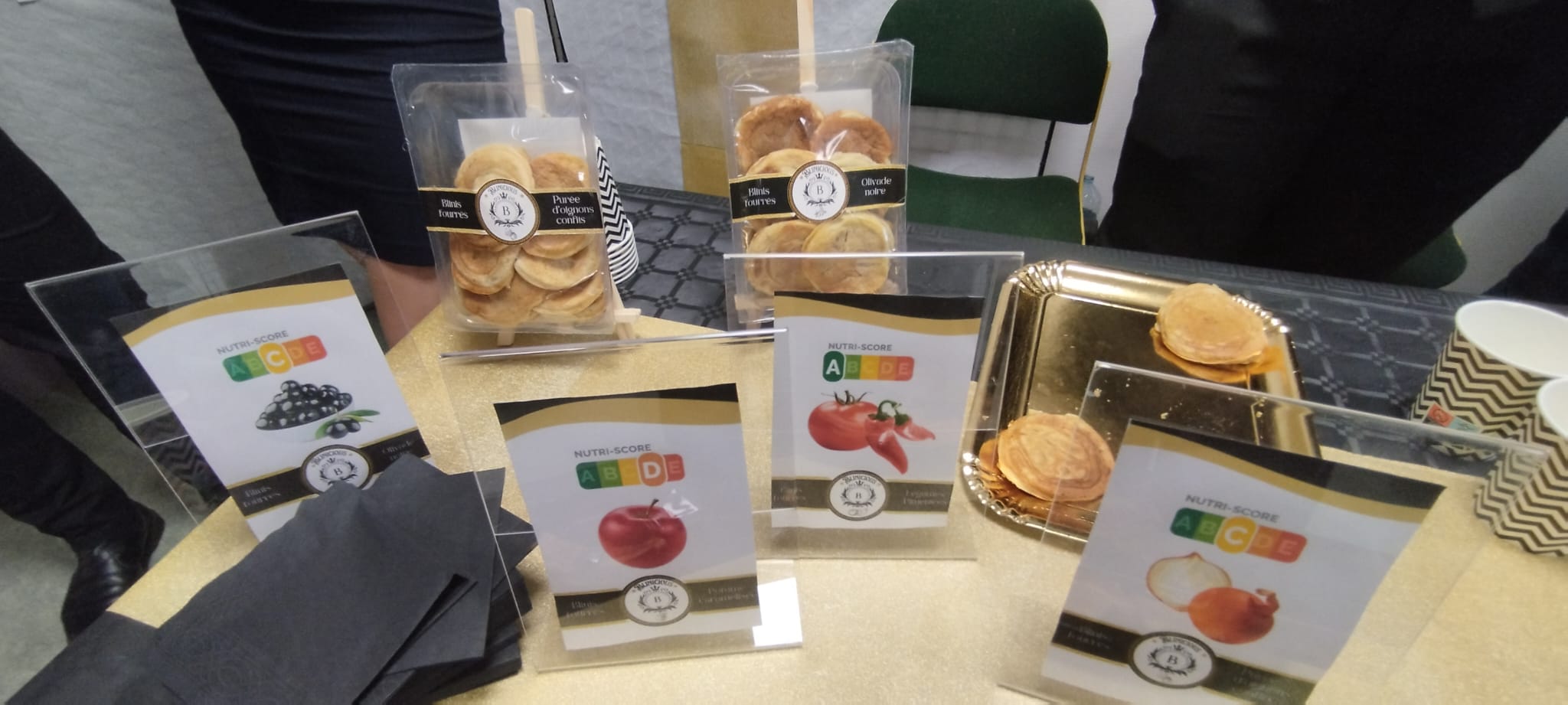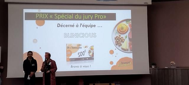 Blinicious : Ce projet est présenté par une équipe de Licence Pro NIPAS de Bourg les Valence. Mathias, Nicolas, Youba, Myra, Eulanie et Jérémy nous ont présenté « Blinicious » .« Blinicious » est un blinis fourré à la purée de fruit ou de légumes.Ils ont réalisé 4 gammes : confit d’oignons, tapenade, pommes caramélisées et purée de légumes pimentée.
