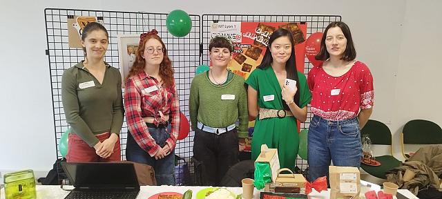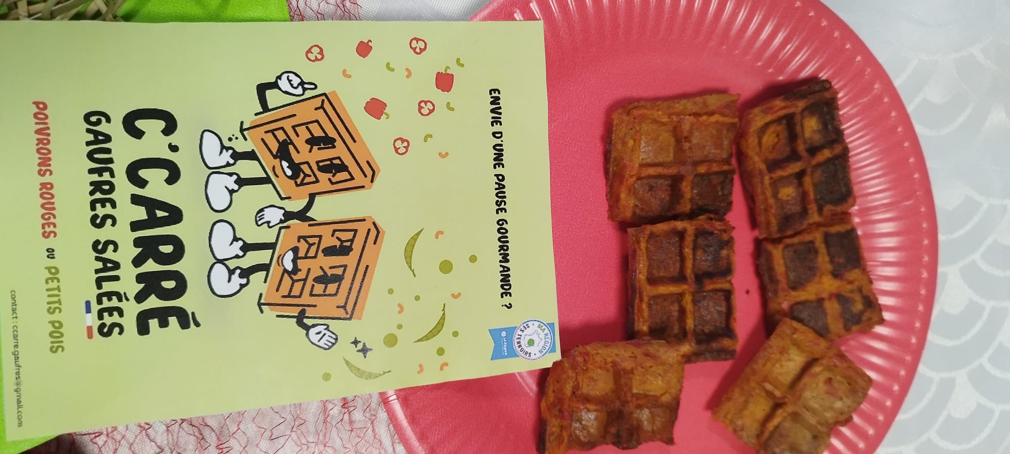 « C-Carré » : Ce projet est présenté par une équipe de BUT3 de l’IUT Lyon 1 Manon, Syrine, Manon, Marie et Lisa nous ont confectionnés des gaufres apéro riches en légumes (+ de 70% de légumes)L’innovation tient au remplacement d’une grande partie de la farine est remplacée par du choux fleur et que la matière grasse a été remplacée par de la courge et de la courgette.