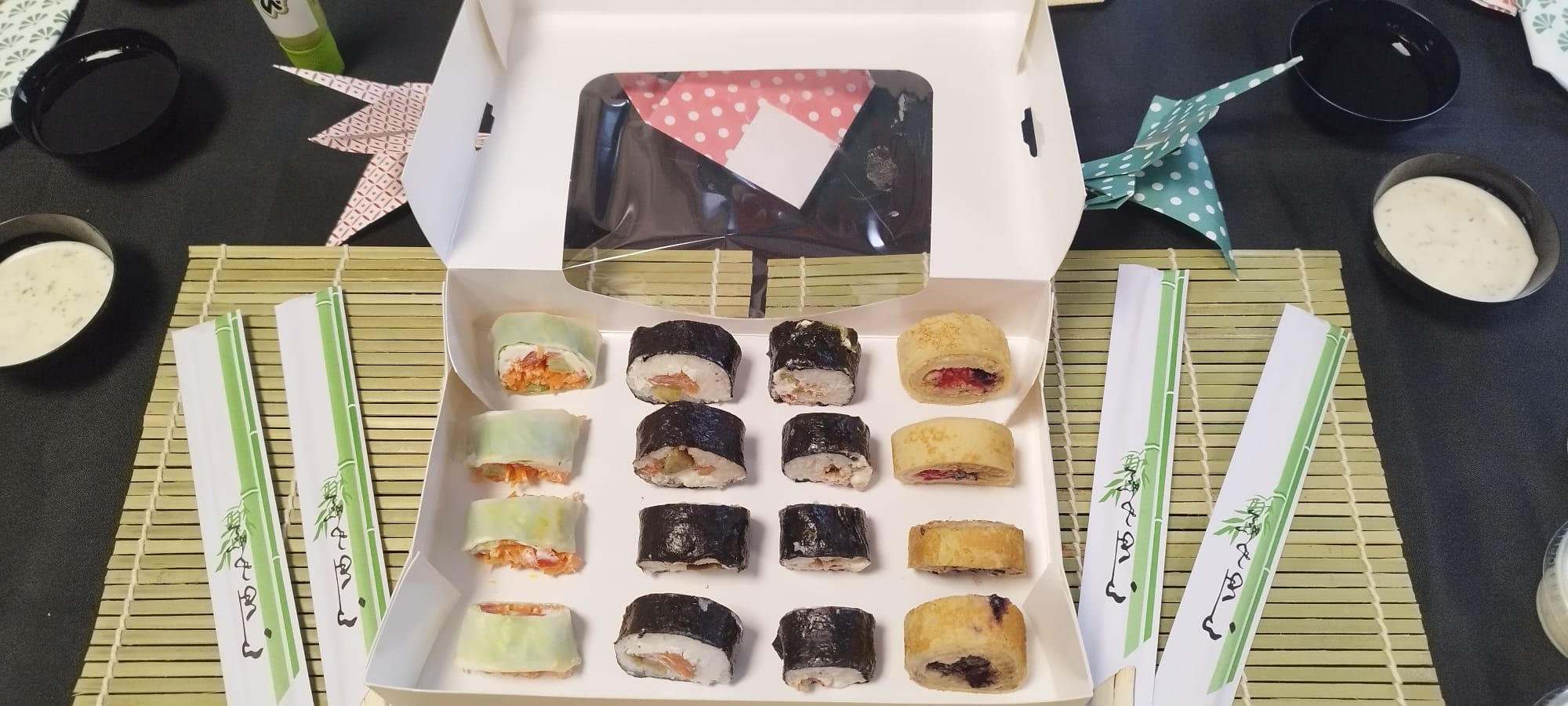 Kit repas façon makis : Ce projet est présenté par une équipe de BTS STA du Lycée La Roche sur Foron Diane et Imane ont réalisé un kit repas complet (entrée , plat, dessert) sous forme de makis.