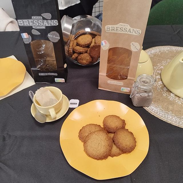 « Palets Bressans » : Ce projet est présenté par une équipe de BTS STA du Lycée des Sardières de Bourg en B. Clémentine, Marie et Eva nous ont patissé des biscuits façon palets bretons adaptés à notre terroir bressan et avec un double avantage nutritionnel et écologique !En effet les « palets bressans » sont confectionnés à partir de beurre de Bresse « AOP » et enrichi à la féverole qui est une légumineuse riche en protéine et très intéressante au niveau écologique.c’est un gouter « santé » & ecoresponsable pour les enfants, mais aussi pour les grands qu’on trouvera très rapidement dans la boutique Sardélices du Lycée des Sardières !